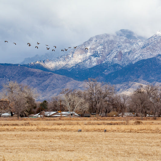 Snowy Sandia with Sandhill Geese